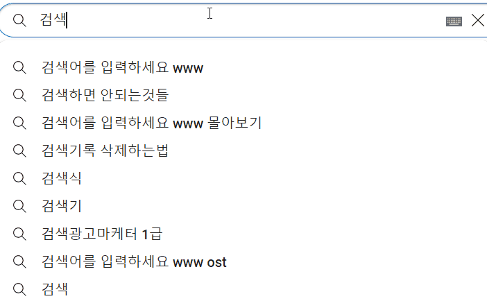 - 첫번째 아이템에서 방향키 위를 누르면 기존의 내가 검색한 텍스트가 다시 나타난다.