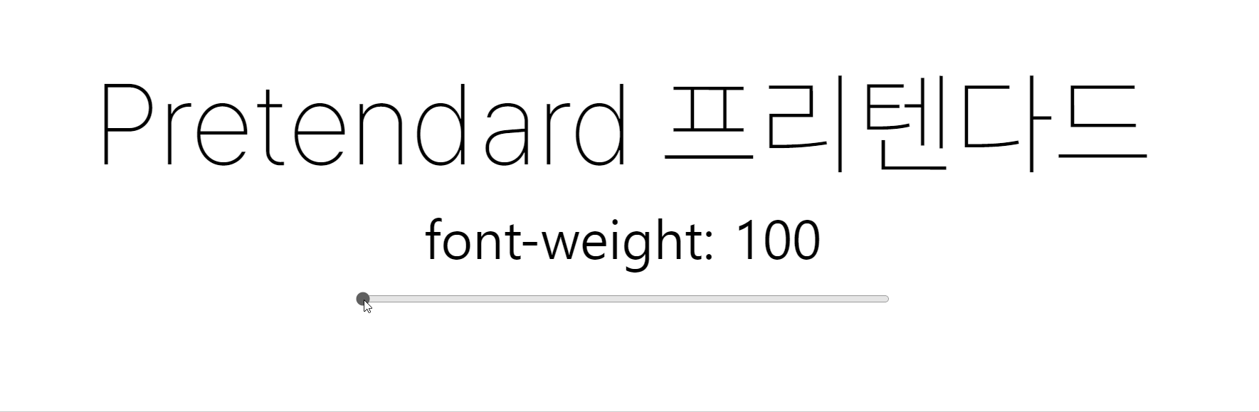 아래는 직접 가변폰트를 적용해보았다. 인풋값에 따른 font-weight 값을 변경해 본 것이다.